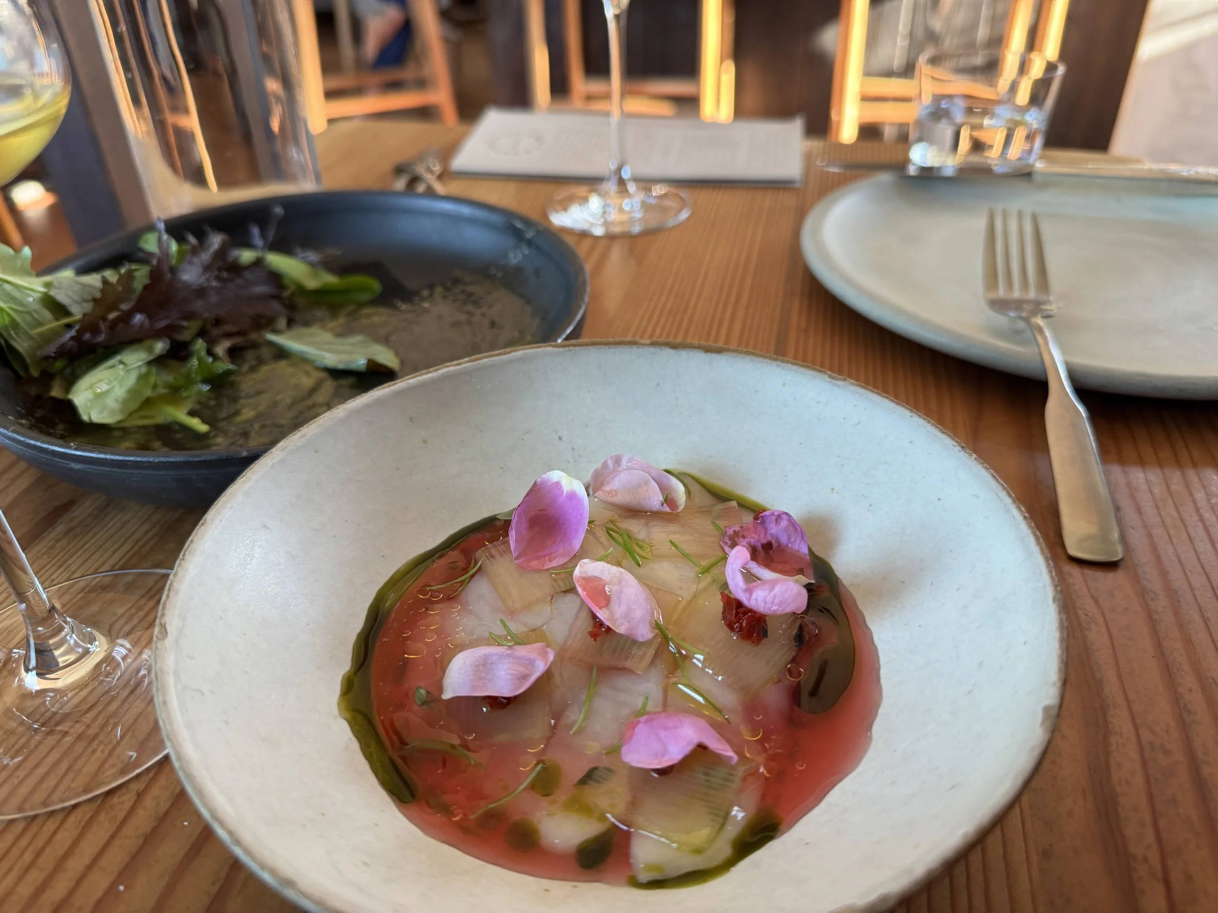 Inside, the experience is just as restorative. The interiors are stunning and warm, filled with thoughtfully selected art that gives each room character and depth without overwhelming the organic nature of the design itself. We loved the way every object felt chosen with care, right down to the shelves lined with books. Whatever you were searching for - inspiration, knowledge, a hand to hold you through grief - there was something to be found for you, a gesture of hospitality that we deeply appreciated.