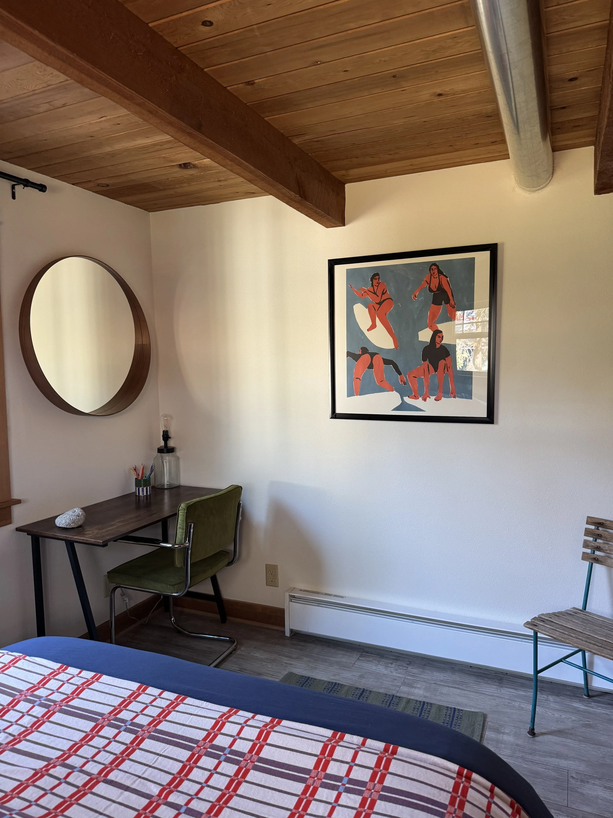 Just north of Pacific City in the tiny coastal stretch of Tierra Del Mar, the Upper Left Cabins offer a modern, design-forward way to experience the Oregon coast. Our AirBnB rental was the perfect balance of minimalist + artsy + PNW retreat and we adored the wood ceilings and quirky surfer themed art + Copenhagen-like lamps all throughout. Step outside and you’re just a few short steps from Tierra Del Mar’s wide, quiet beach, with views of Cape Kiwanda rising to the south. Inside, the house was incredibly well equipped with a well-stocked kitchen and cozy details throughout.